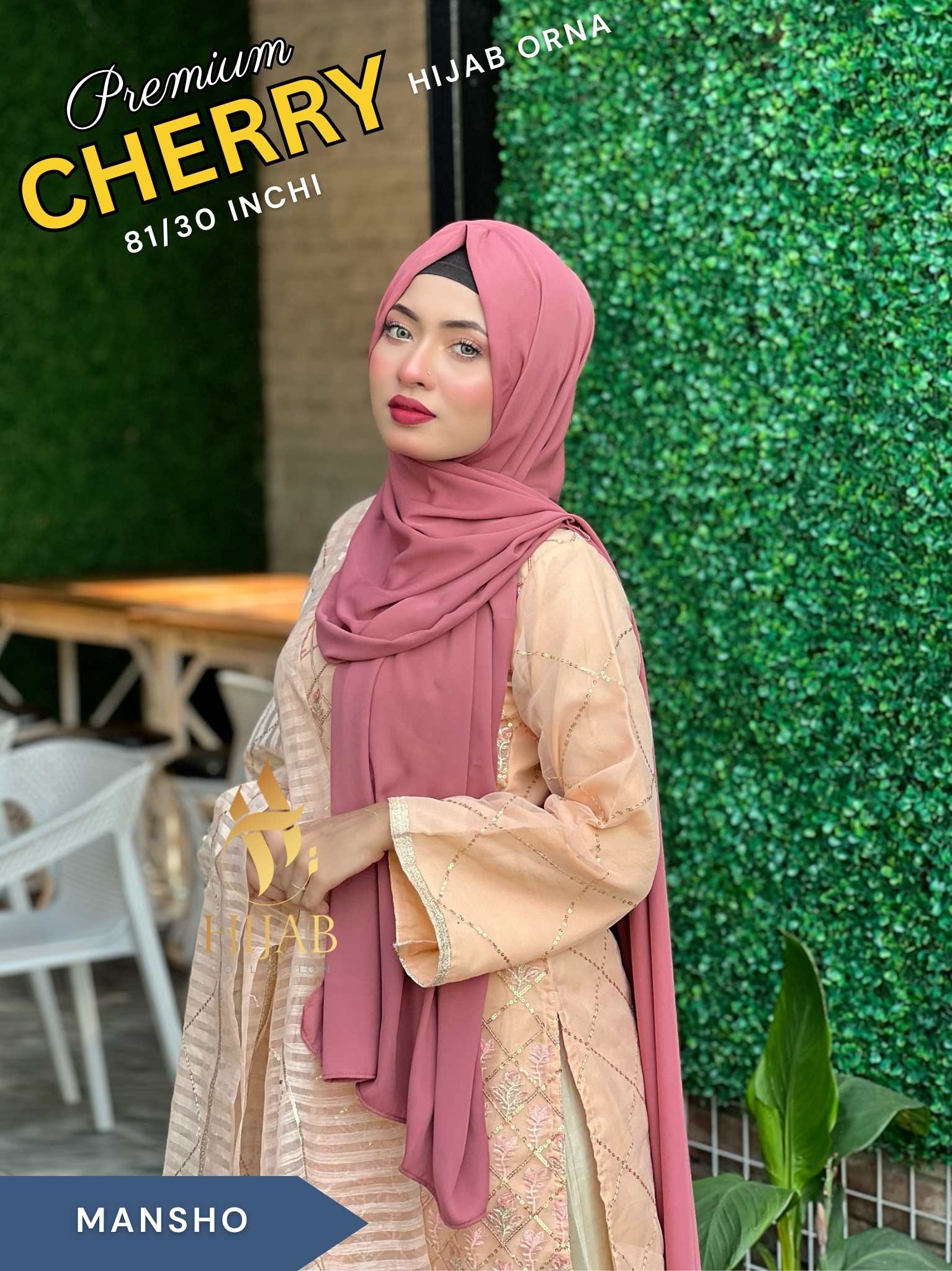 দুবাই চেরি জর্জেট হিজাব ওড়না -CGH-Mansho Color
