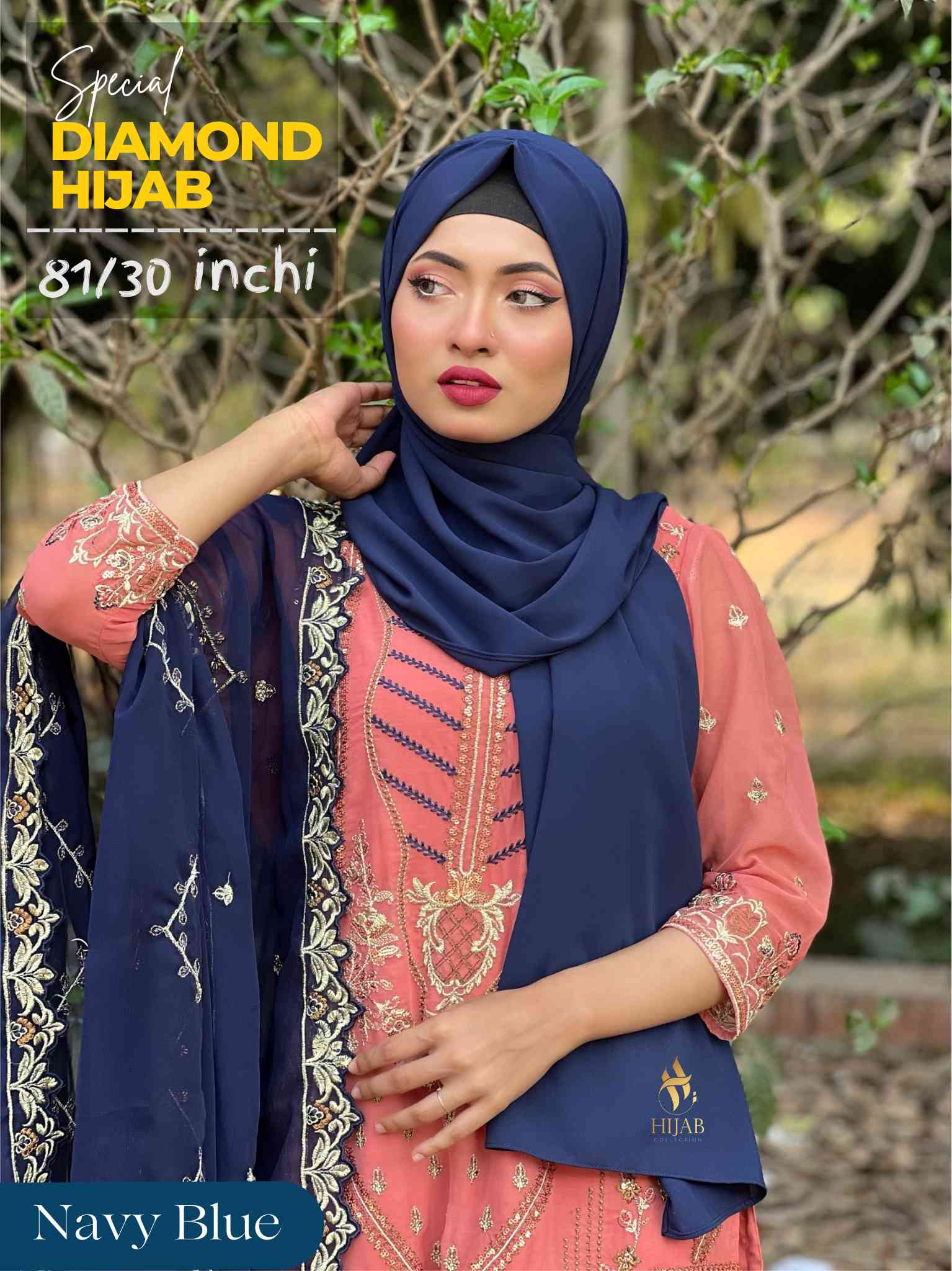 ডায়মন্ড জর্জেট হিজাব ওড়না -DGH- Navy Blue Color